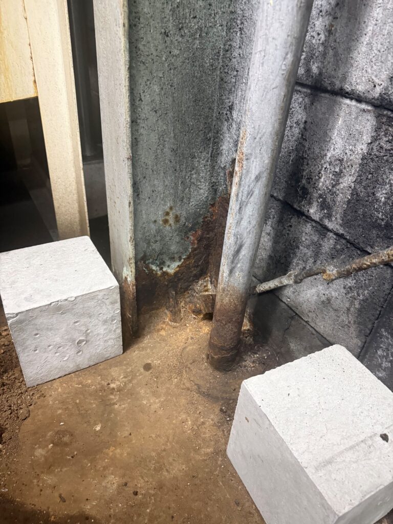 柱の基礎部分にサビや劣化が見られたため、安全面を考慮し補強を行うこととなりました。