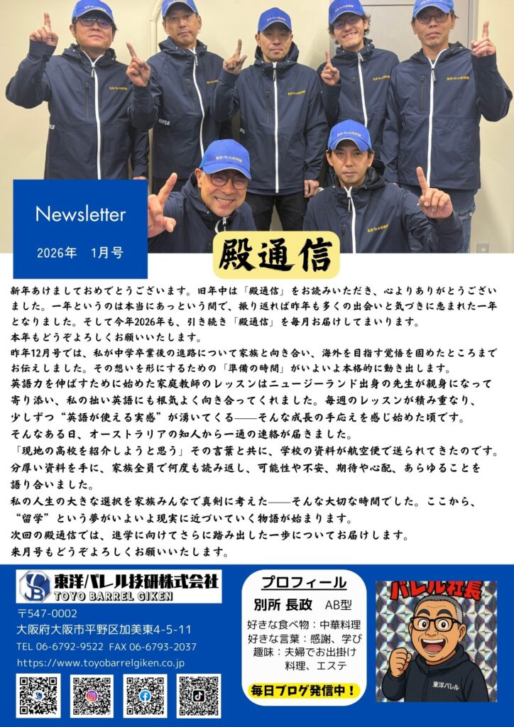 「殿通信」1月号では、新しい一年への決意と覚悟をテーマに綴っています。
