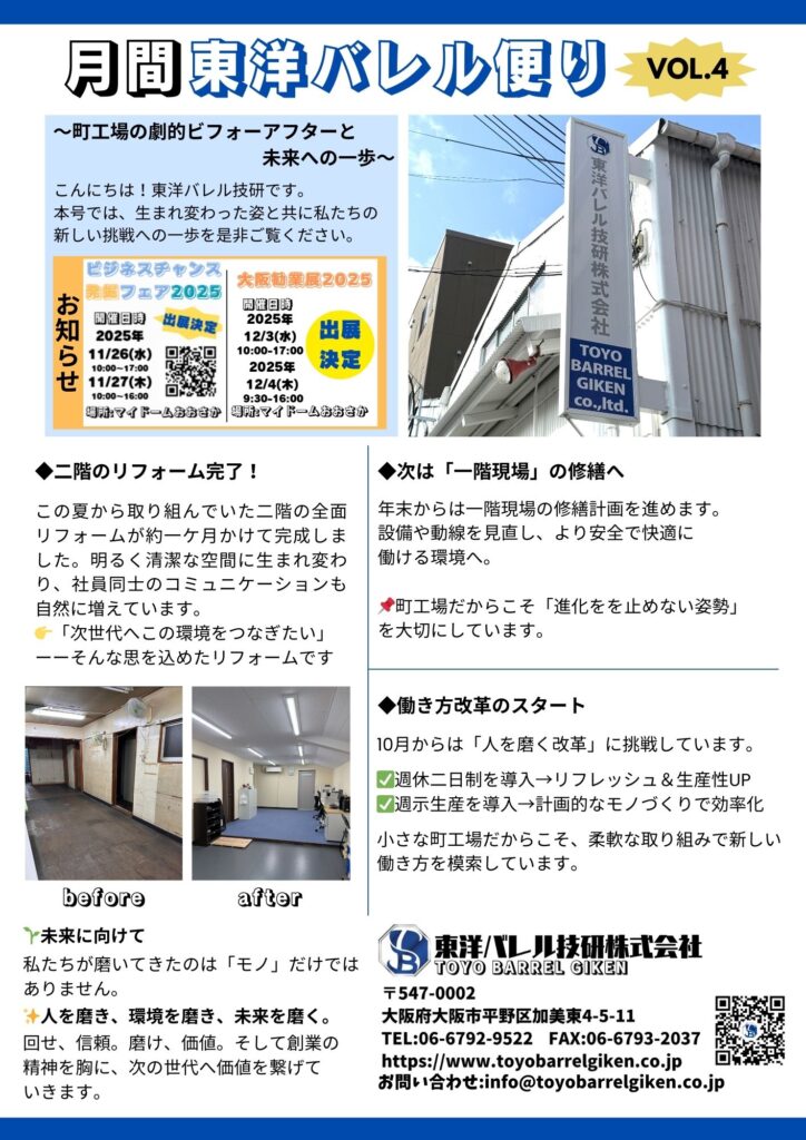 今月も「月間東洋バレル便り 10月号」を発行いたしました。